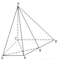 PC⊥平面ABCD,點E為AB中點。AC⊥DE,