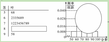 某校高三某班的一次數(shù)學(xué)測試成績(滿分為100分)的莖葉圖和頻率分布直方圖都