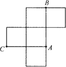 如圖是一個無蓋的正方體盒子展開后的平面圖,A、B、C是展開圖上的三點(diǎn),則在正方體盒子中,∠ABC的值為________.