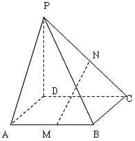 在四棱錐P-ABCD中,PD⊥平面ABCD,底面是邊長是1的正方形,側棱PA與底面成45°的角,M,N分別是AB,PC的中點,