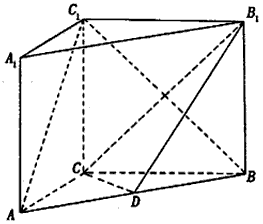 如圖, 直三棱柱ABC-A1B1C1中,AC=3,BC=4, AA1=4,AB=5,點(diǎn)D是AB的中點(diǎn)。