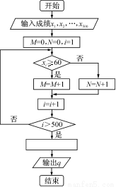 下左圖是計(jì)算某年級(jí)500名學(xué)生期末考試(滿分為100分)及格率