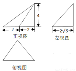 某三棱錐的三視圖如圖所示,該三棱錐的四個(gè)面的面積中,最大的面積是( )