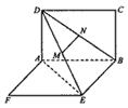如圖,兩矩形ABCD、ABEF所在平面互相垂直,DE與平面ABCD及平面所成角分別為30°、45°, M、N分別為DE與DB的中點(diǎn),且MN=1。