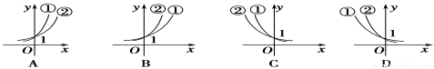 已知0<m<n<1,則指數(shù)函數(shù)①y=mx,②y=nx的圖象為( ).