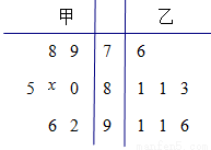某中學(xué)高三年級(jí)從甲、乙兩個(gè)班級(jí)各選出7名學(xué)生參加數(shù)學(xué)競(jìng)賽,他們?nèi)〉玫某煽?jī)(滿分100分)的莖葉圖如圖,其中甲班學(xué)生的平均分是85.