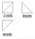 某幾何體的三視圖如圖所示,其正視圖是邊長(zhǎng)為2的正方形,側(cè)視圖和俯視圖都是等腰直角三角形,則此幾何體的體積是 .