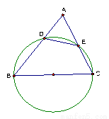 如圖,銳角三角形ABC中,以BC的直徑的半圓分別交AB,AC于點(diǎn)D,E,則⊿ADE的面積與⊿ABC的面積的比值是( )