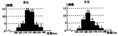 為了解學(xué)生身高情況,某校以10%的比例對(duì)全校700名學(xué)生按性別進(jìn)行分層抽樣調(diào)查,測(cè)得身高情況的統(tǒng)計(jì)圖如下: