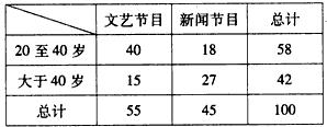 某電視臺(tái)在一次對(duì)收看文藝節(jié)目和新聞節(jié)目觀眾的抽樣調(diào)查中,隨機(jī)抽取了100名電視觀眾,相關(guān)的數(shù)據(jù)如下表所示: