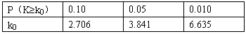 | k | 2.072 | 2.706 | 3.841 | 5.024 | 6.635 | 7.879 | 10.828 |