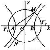 2為直徑的圓交雙曲線的一條漸近線于M、N兩點,且滿足∠MAB=30°,則該雙曲線的離心率為