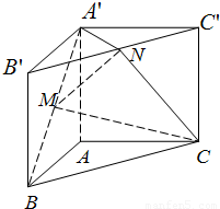 如圖,直三棱柱ABC-A'B'C',∠BAC=90°,AB=AC=λAA',點(diǎn)M,N分別為A'B和B'C'的中點(diǎn).