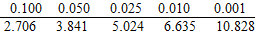 | k | 3.841 | 6.635 | 10.828 |