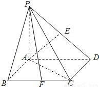 如圖,四棱錐P-ABCD的底面ABCD是正方形,側(cè)棱PA⊥底面ABCD,PA=AD,E、F分別是棱PD、BC的中點(diǎn).