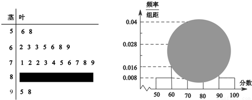 某校高三(1)班的一次數(shù)學(xué)測試成績的莖葉圖和頻率分布直方圖都受到不同程度的破壞,但可見部分如下,據(jù)此解答如下問題:
