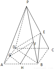 如圖,在四棱錐P-ABCD中,底面ABCD為平行四邊形,E、F G、H分別是線段PC、PB、AD、AB的中點.