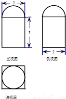 已知一個空間幾何體的三視圖如圖所示,其中正視圖,側(cè)視圖,都是由半圓和矩形組成,由圖中標出的尺寸,計算這個幾何體的表面積是