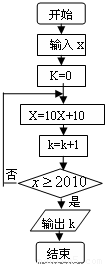按如圖所示的程序框圖運算,若輸出k=2,則輸入x的取值范圍是