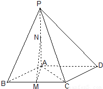 如圖在四棱錐P-ABCD中底面ABCD是菱形,∠ABC=60°,PA⊥平面ABCD,點M、N分別是BC、PA的中點,且PA=AB=2