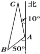 我艦在敵島A處南偏西50°的B處,且AB距離為12海里,發(fā)現(xiàn)敵艦正離開島沿北偏西10°的方向以每小時10海里的速度航行,若我艦要用2小時追上敵艦,求速度大。