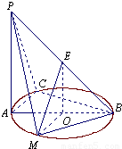 如圖所示,PA⊥平面ABC,點C在以AB為直徑的⊙O上,∠CBA=30°,PA=AB=2,,點E為線段PB的中點,點M在AB弧上,且OM∥AC.
