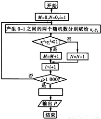 如圖是用模擬方法估計(jì)圓周率π的程序框圖,P表示估計(jì)結(jié)果,則圖中空白框內(nèi)應(yīng)填入( )