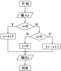 若如圖所示的算法流程圖中輸出y的值為0,則輸入x的值可能是