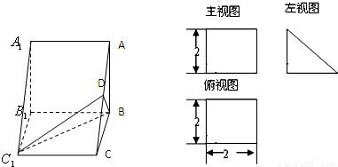 1的直觀圖及三視圖(主視圖和俯視圖是正方形,左側(cè)圖是等腰直角三角形)如圖,D為AC的中點(diǎn).