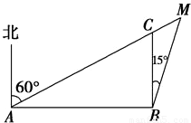 一船以每小時(shí)15 km的速度向東航行,船在A處看到一燈塔M在北偏東60°方向,行駛4 h后,船到達(dá)B處,看到這個(gè)燈塔在北偏東15°方向,這時(shí)船與燈塔的距離為