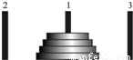 如圖所示:有三根針和套在一根針上的若干金屬片.按下列規(guī)則,把金屬片從一根針上全部移到另一根針上.