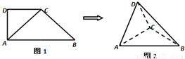 如圖1,在直角梯形ABCD中,∠ADC=90°,CD∥AB,AB=4,AD=CD=2.將△ADC沿AC折起,使平面ADC⊥平面ABC,得到幾何體D-ABC,如圖2所示.