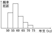 某校對高三年級的學(xué)生進行體檢,現(xiàn)將高三男生的體重(單位:kg)數(shù)據(jù)進行整理后分成五組,并繪制頻率分布直方圖(如圖所示).根據(jù)一般標(biāo)準,高三男生的體重超過65 kg屬于偏胖,低于55 kg屬于偏瘦.已知圖中從左到右第一、第三、第四、第五小組的頻率分別為0.25、0.20、0.10、0.05,第二小組的頻數(shù)為400,則該校高三年級的男生總數(shù)和體重正常的頻率分別為( )