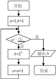 已知流程圖如圖所示,該程序運行后,為使輸出的b值為16,則循環(huán)體的判斷框內(nèi)①處應(yīng)填的是( )