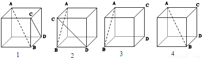 在下列四個(gè)正方體中,能得出AB⊥CD的序號(hào)是