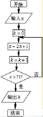 按如圖所示的程序框圖運算.若輸入x=8,則輸出k=