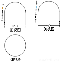 (文)已知一個空間幾何體的三視圖如圖所示,其中正視圖、側(cè)視圖都是由半圓和矩形組成,根據(jù)圖中標(biāo)出的尺寸 (單位:cm),可得這個幾何體的體積是