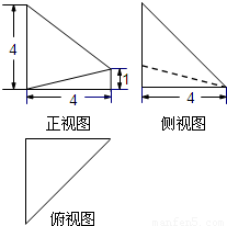 已知幾何體A-BCDE的三視圖如圖所示,其中俯視圖和側(cè)視圖都是腰長為4的等腰直角三角形,正視圖為直角梯形,則該幾何體的體積V的大小為( )