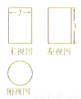 一個空間幾何體的正視圖、側視圖均是長為2、高為3的矩形,俯視圖是直徑為2的圓(如圖),則這個幾何體的表面積為( )