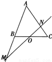 如圖,在△ABC中,點O是BC的中點.過點O的直線分別交直線AB、AC于不同的兩點M、N,若