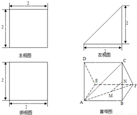如圖,多面體AEDBFC的直觀圖及三視圖如圖所示,M,N分別為AF,BC的中點(diǎn).