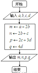 為確保信息安全,信息需加密傳輸,發(fā)送方由明文→密文(加密),接收方由密文→明文(解密),已知加密規(guī)則如圖所示,例如,明文1,2,3,4對應(yīng)密文5,7,18,16.當(dāng)接收方收到密文9,10,22,24時,則解密得到的明文為