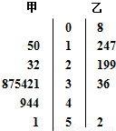 如圖是甲、乙兩名籃球運動員某賽季一些場次得分的莖葉圖,中間的數(shù)字表示得分的十位數(shù),據(jù)圖可知( )