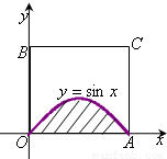如圖所示,正方形OACB內(nèi)的陰影區(qū)域的上邊界是曲線y=sinx,現(xiàn)向正方形區(qū)域內(nèi)隨機等可能地投點,則點落在陰影區(qū)域的概率是( )