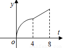 某工廠從2000年開(kāi)始,近八年以來(lái)生產(chǎn)某種產(chǎn)品的情況是:前四年年產(chǎn)量的增長(zhǎng)速度越來(lái)越慢,后四年年產(chǎn)量的增長(zhǎng)速度保持不變,則該廠這種產(chǎn)品的產(chǎn)量y與時(shí)間t的函數(shù)圖象可能是( )