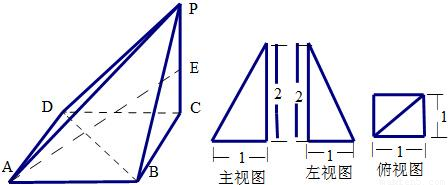 已知一四棱錐P-ABCD的三視圖,E是側(cè)棱PC上的動點(diǎn).