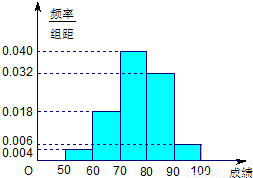 某班50名學(xué)生在一次數(shù)學(xué)測試中,成績?nèi)拷橛?0與100之間,將測試結(jié)果按如下方式分成五組:第一組[50,60),第二組[60,70),…,第五組[90,100].下圖是按上述分組方法得到的頻率分布直方圖.
