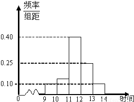 某商場在國慶黃金周的促銷活動(dòng)中,對10月2日9時(shí)到14時(shí)的銷售額進(jìn)行統(tǒng)計(jì),其頻率分布直方圖如圖所示,已知9時(shí)至10時(shí)的銷售額為2.5萬元,則11時(shí)到12時(shí)的銷售額為( )