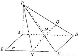 如圖,邊長(zhǎng)為2的正方形ABCD所在平面為α,PA⊥平面α,PA=2,M、N分別是AD、BC的中點(diǎn),MQ⊥PD于Q.