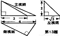一個棱錐的三視圖如圖,則該棱錐的全面積(單位:cm